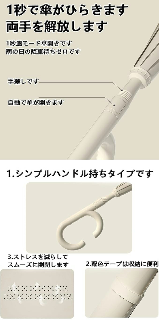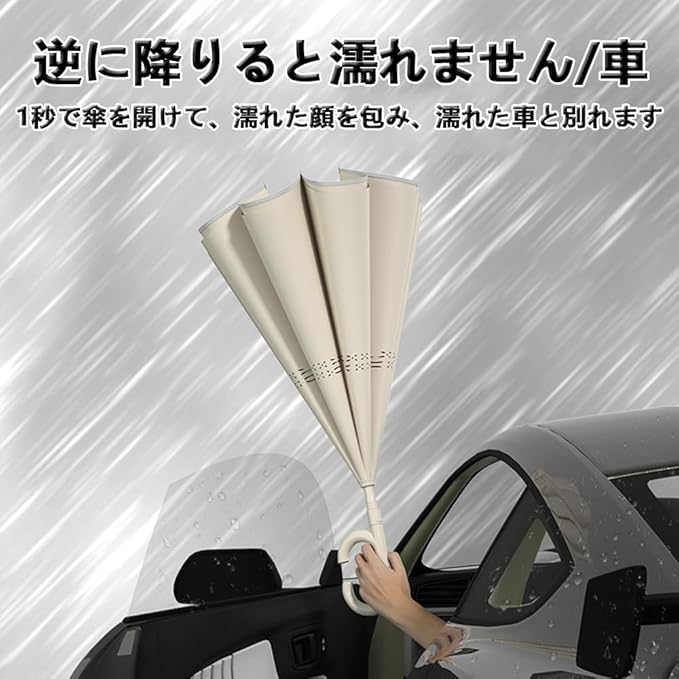 逆さ傘 長傘 ワンタッチ 自動開閉 晴雨両用 逆折り式傘 自立式 両手自由 UVカット 8本骨傘 反射テープ 手離れC型手元 紫外線遮断 遮熱 遮光 撥水加工 2重構造 強風 風に強い 雨の 梅雨季節