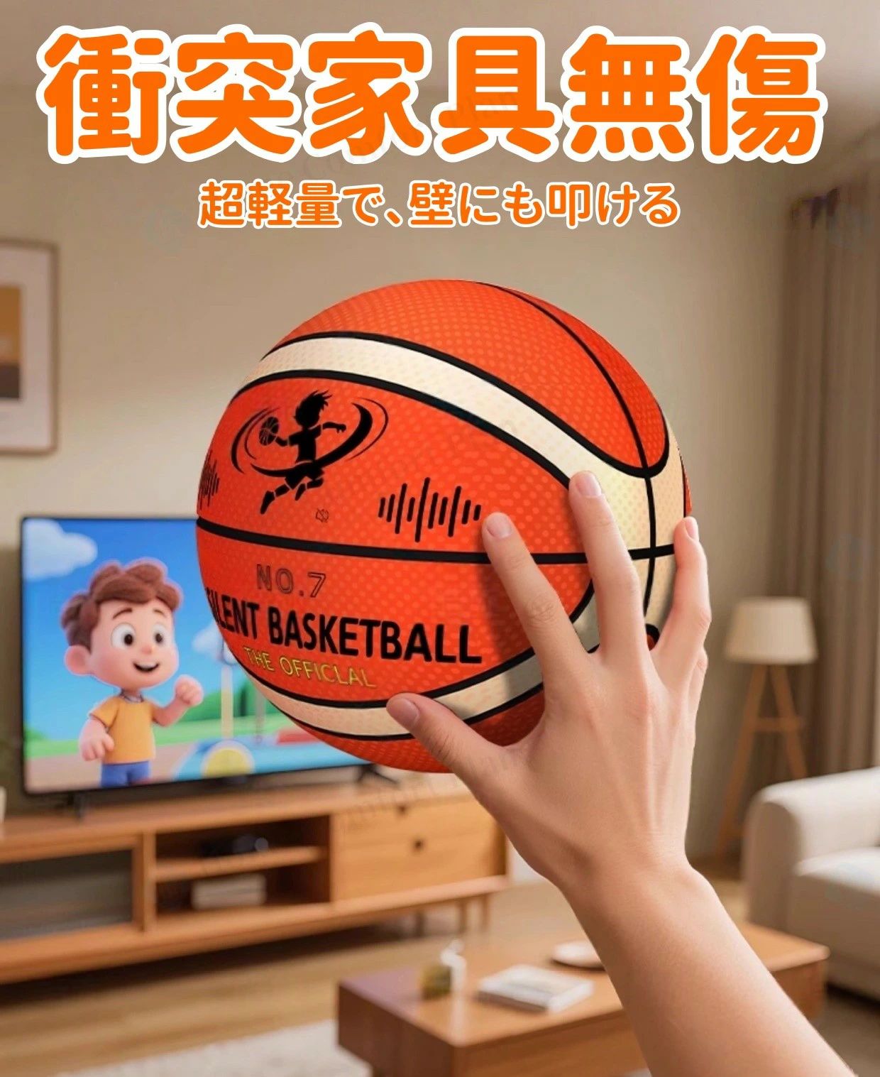 ルームボール バスケットボール3号 5号 7号 静音 バスケットボール ゴール付き 安全 高密度 静音設計 騒音防止 衝撃吸収 室内スポーツ 屋内練習用 軽量 転がりにくい 音が静か