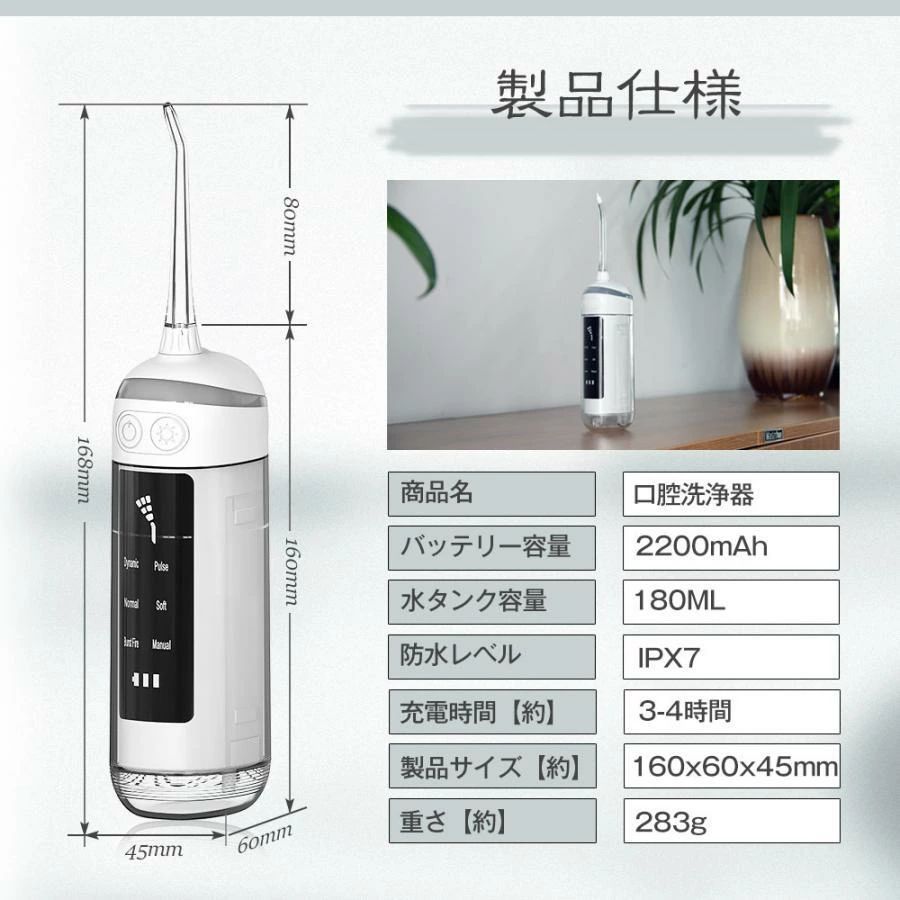 ウォーターフロス 歯間洗浄機 2200 ホワイト ブラック