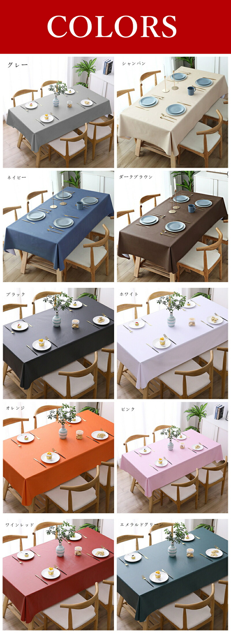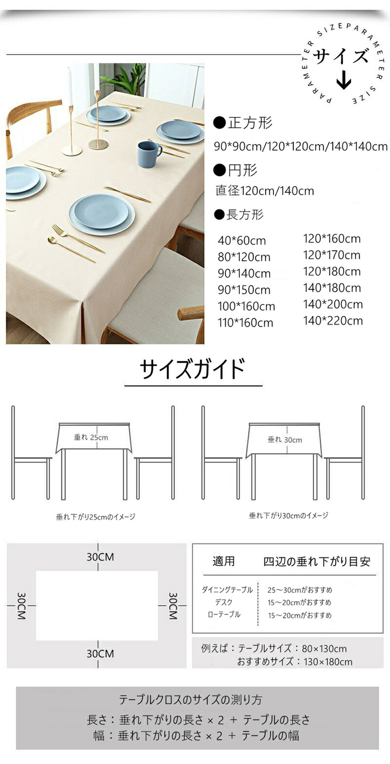 テーブルクロス 撥水 北欧 おしゃれ キッチン用品 食器 調理器具 豊富 グレー シャンパン ネイビー ダークブラウン ブラック ホワイト オレンジ ピンク ワインレッド エメラルドグリーン 40*60cm 80*120cm 90*90cm 90*140cm 90*150cm 100*160cm 110*160cm 120*120cm 120*160cm 120*170cm 120*180cm 140*140cm 140*180cm 140*200cm 140*220cm 円形直径120cm 円形直径140cm オーダーサイズ