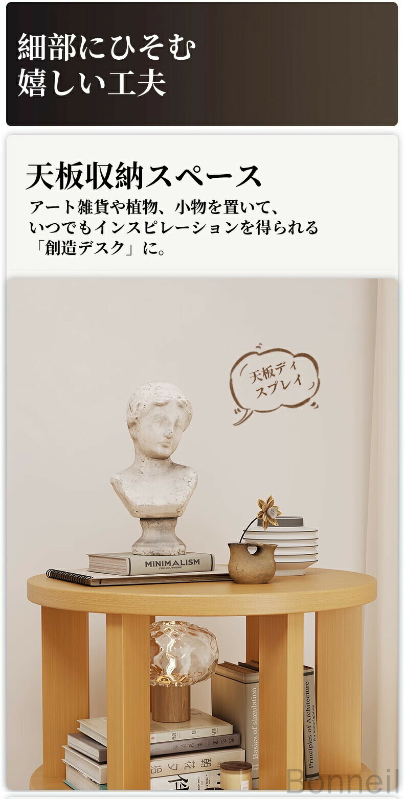 天板はディスプレイスペースとしても活躍。アート雑貨や小物も置ける嬉しい設計。カラーはシックなブラックオークとナチュラルウッドの2色展開で、どんな空間にも馴染みます。