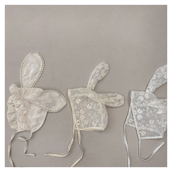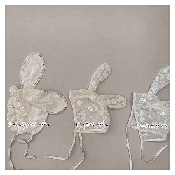 ベビー レースうさぎ耳ボンネット帽子 ベビー ベビー服 ファッション 帽子 その他 豊富 ナチュラルベージュ レースベージュ レースホワイト