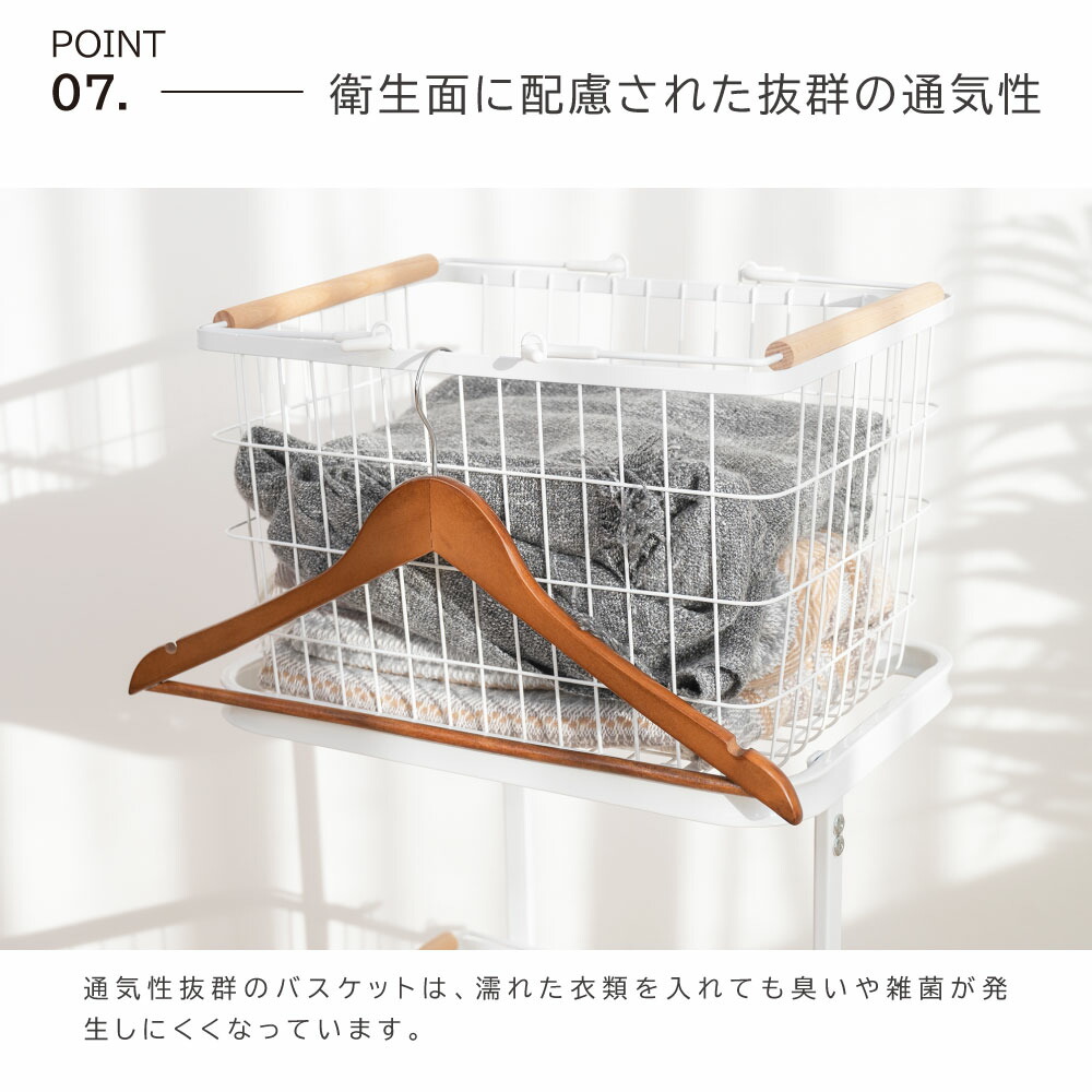 ランドリーバスケット キャスター付き ホワイト ブラック