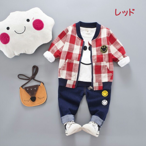 ベビー キッズ ニコちゃんマークが可愛 ベビー ベビー服 ファッション 上下セット セットアップ 続々入荷中 80 90 100 110 レッド ネイビー