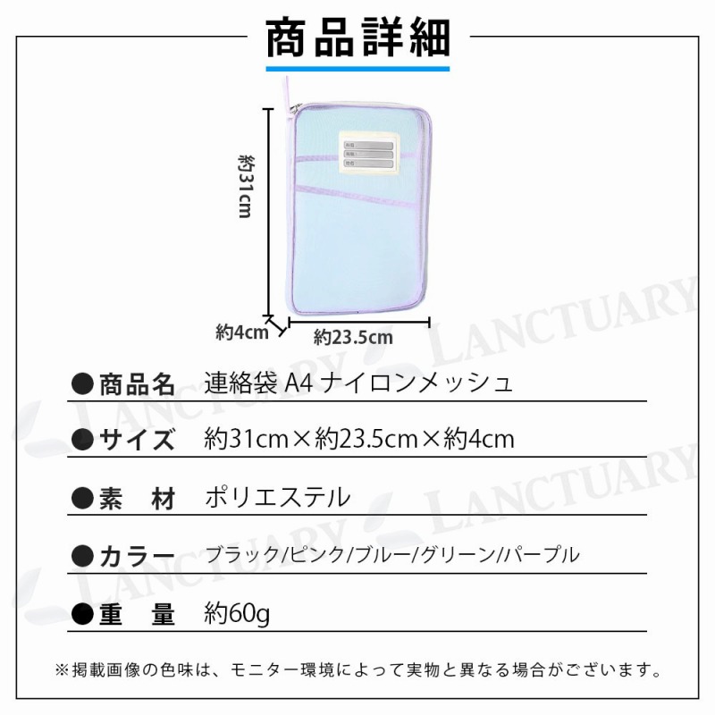 連絡袋 A4 ナイロンメッシュ 縦型書 日用品雑貨 文房具 手芸 豊富な品揃え ブラック ブルー グリーン ピンク パープル