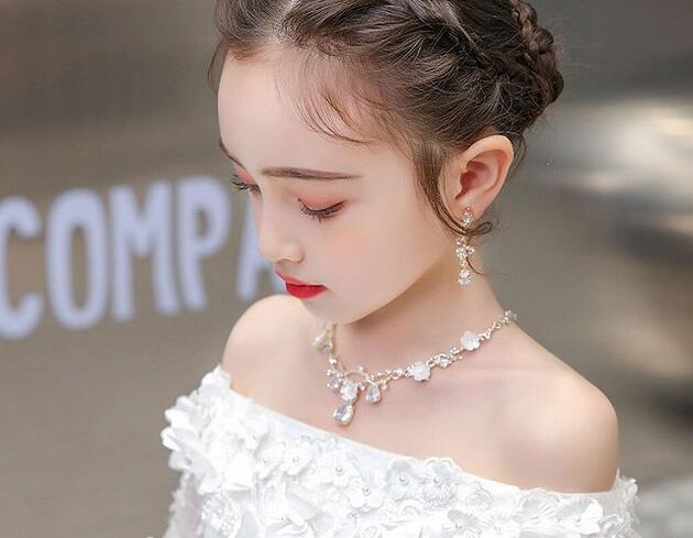 子供髪飾り 花 リーフ パール モチー キッズ アクセサリー ネックレス ブレスレット 指輪 早い者勝ち ホワイト ダークゴールド