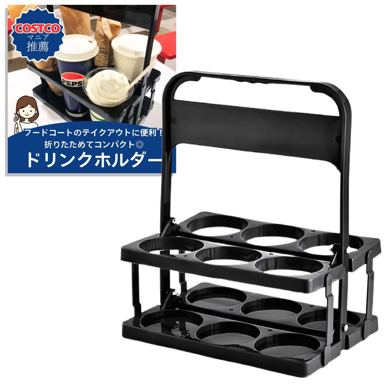 ドリンクホルダー 6本 折りたたみ ド ブラック レッド ブルー グリーン イエロー ピンク ラベンダー パープル
