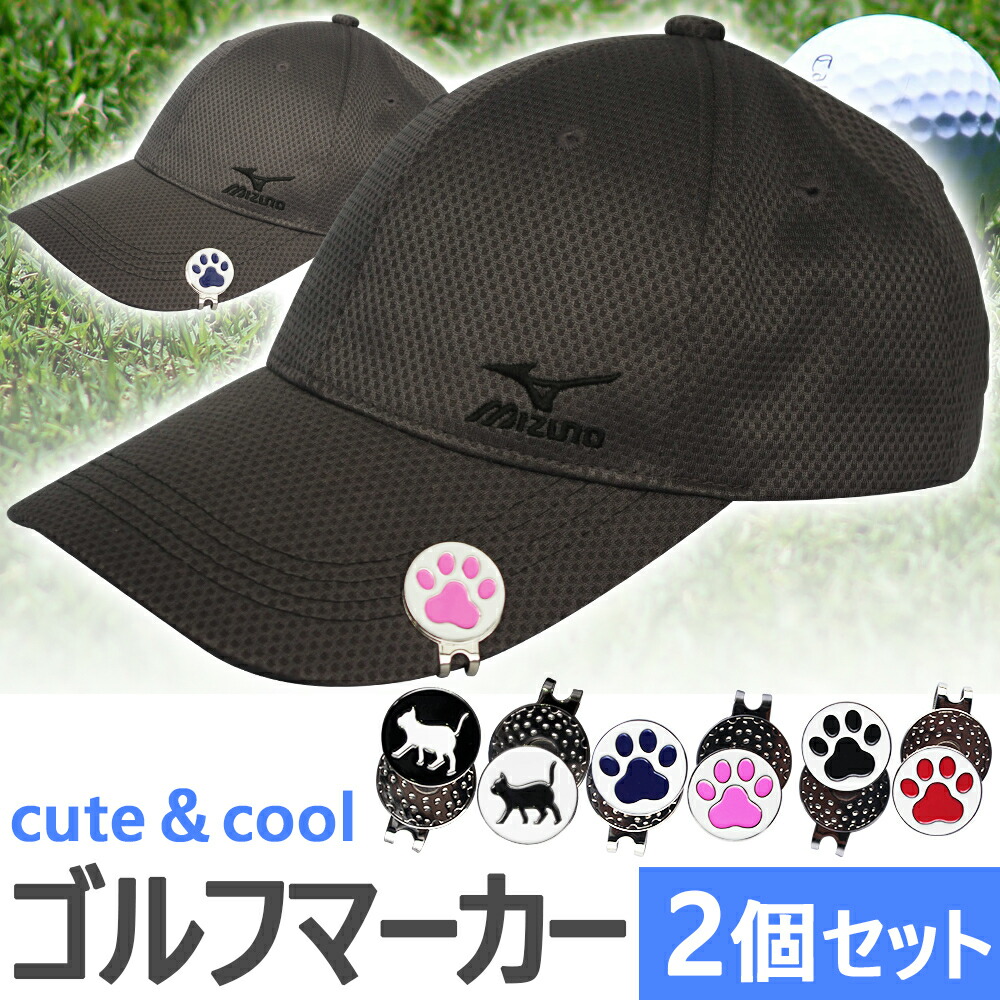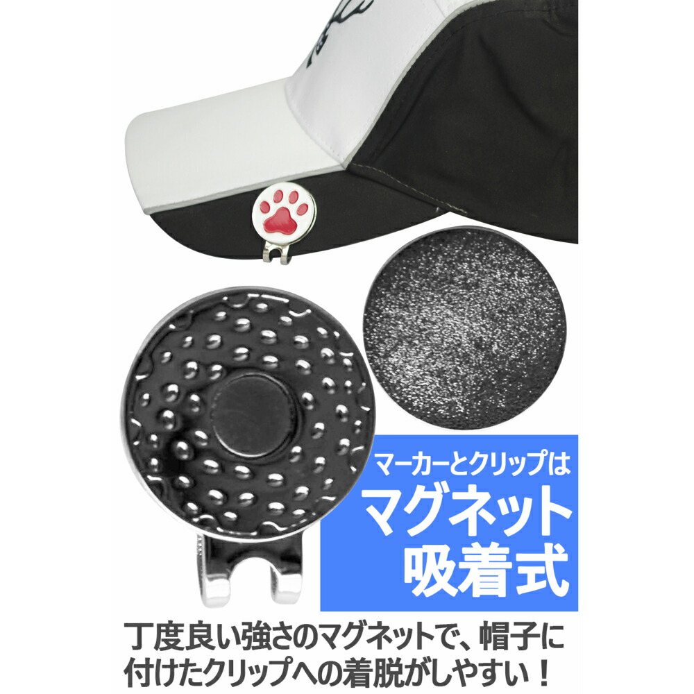 ゴルフマーカー マグネット付き ハット スポーツ アウトドア 続々登場 肉球1 黒×赤 肉球2 紺×桃 歩き猫 黒×白