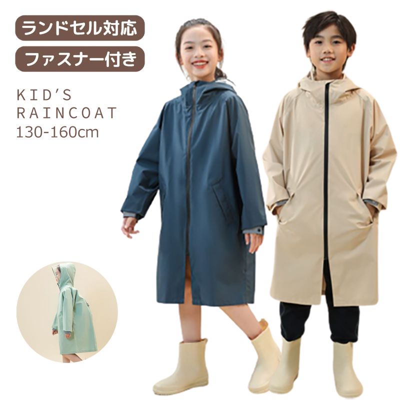 レインコート キッズ ジュニア ランド 130cm 140cm 150cm 160cm ベージュ グリーン ネイビー