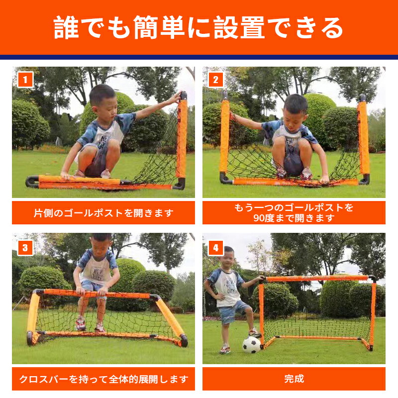 サッカーゴール 子供 折りたたみ サッカー 組立不要 折りたたみ式 折り畳み コンパクト 軽量 持ち運び 収納バッグ 付き 練習 対戦 ゲーム トレーニング 屋外 ポップアップ 日本語使用説明書 室内