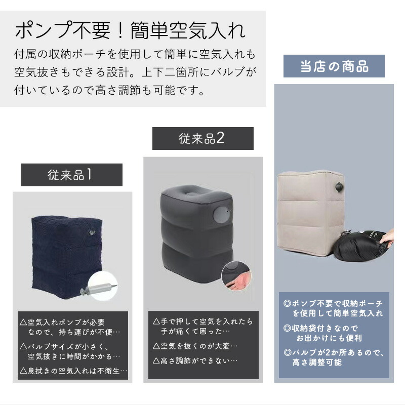 ポンプ不要 フットレスト テレワーク 旅行用品 機内リラックスグッズ フットレスト 続々入荷中 1個 2個セット 3個セット