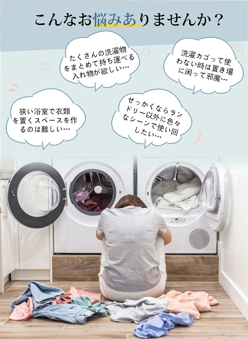 洗濯かご 折りたたみ ランドリーバッグ ブラック ライトグレー