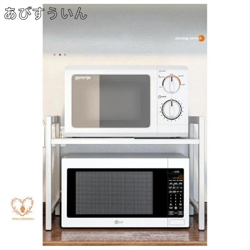 レンジ上ラック 1段 2段高さ調整 キ キッチン用品 食器 調理器具 新作 ホワイト ブラック 1段フック6個付 2段フック6個付