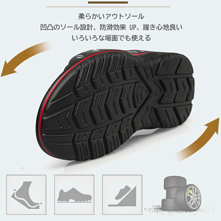 【ファッション性抜群】人間工学に基づいた設計で、足裏に滑り止めの粒子デザインが施され、マッサージ効果も期待できます。レザーアッパーと金属スタッズ付きで剥がれにくく、耐久性があります。