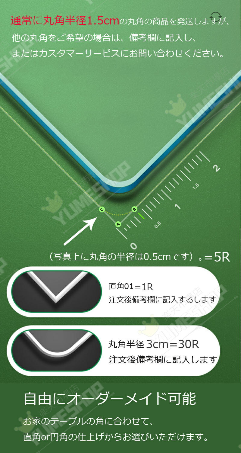 オーダーサイズは備考欄に書いていただきたいです。オーダーサイズはサイズ/厚さによって料金が追加される可能性があります。追加料金が発生した場合、金額修正後2営業日以内にメールにてご報告致します。
