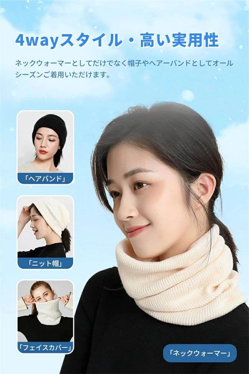 ネックウォーマーとしてだけではなく、フェイスカバーやニット帽、ヘアバンドとしてもご使用いただけます。気分に合わせて選べる4つのタイプ。何通りもの使い方でコーデを楽します。長さも折り方で調整できるので、さまざまな服とコーディネートをさせて、全体のスタイリングを引き立てることもできます。