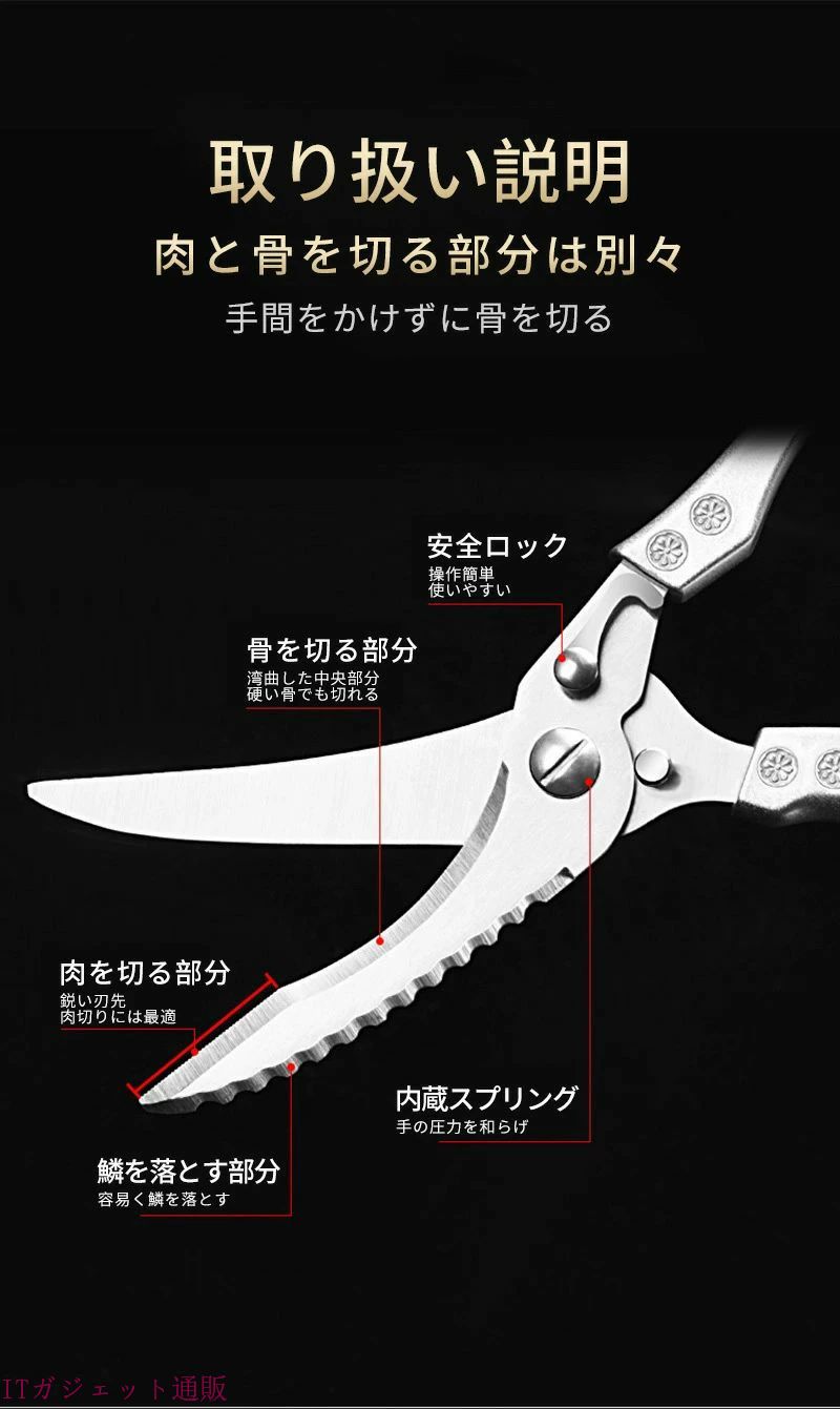 キッチンバサミ ステンレス鋼 錆びない 調理 製菓道具 調理器具 キッチンバサミ 続々登場 シルバー(本体のみ) 銅色(パッケージ付き)