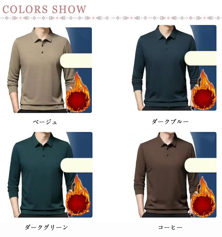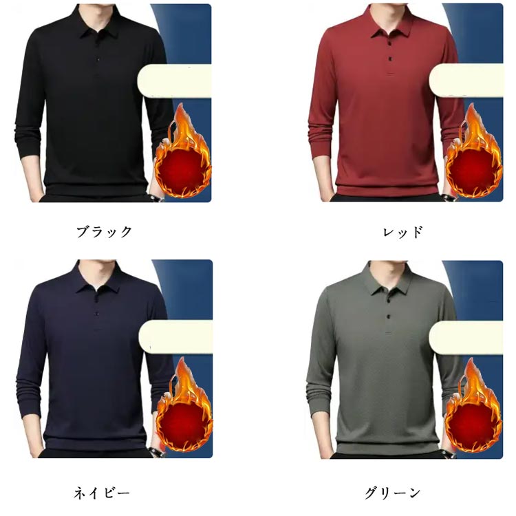 ポロシャツ 長袖 シンプル メンズ 裏 メンズファッション 特集 ベージュ ダークブルー ダークグリーン コーヒー ブラック レッド ネイビー グリーン M L XL 2XL 3XL 4XL