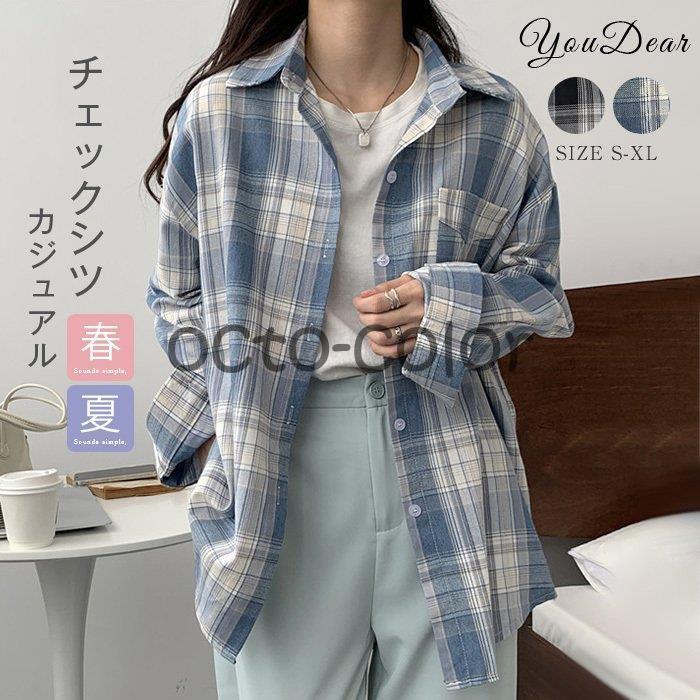 レディース シャツ チェックシャツ シ レディースファッション 人気 ブルー ブラック S M L XL