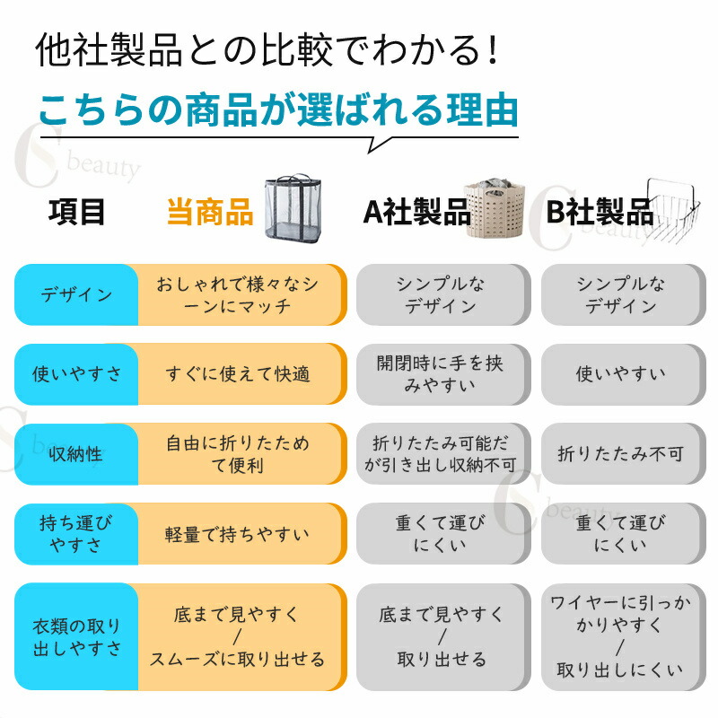 バスケット本体は補強バー付きで形をしっかり保持し、倒れにくく、収納が簡単です。