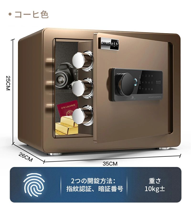 家庭用金庫 指紋認証 小型金庫 暗証番 ブラック ホワイト コーヒー 31*20*20cm 35*26*25cm 36*30*30cm 40*30*36cm 38*32*45cm