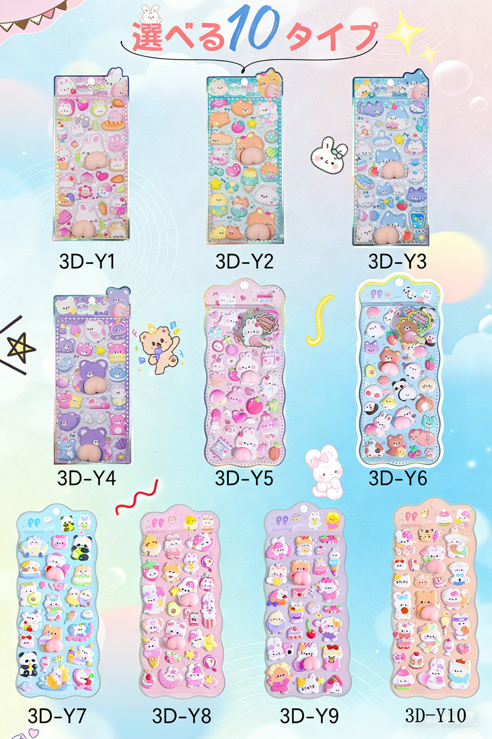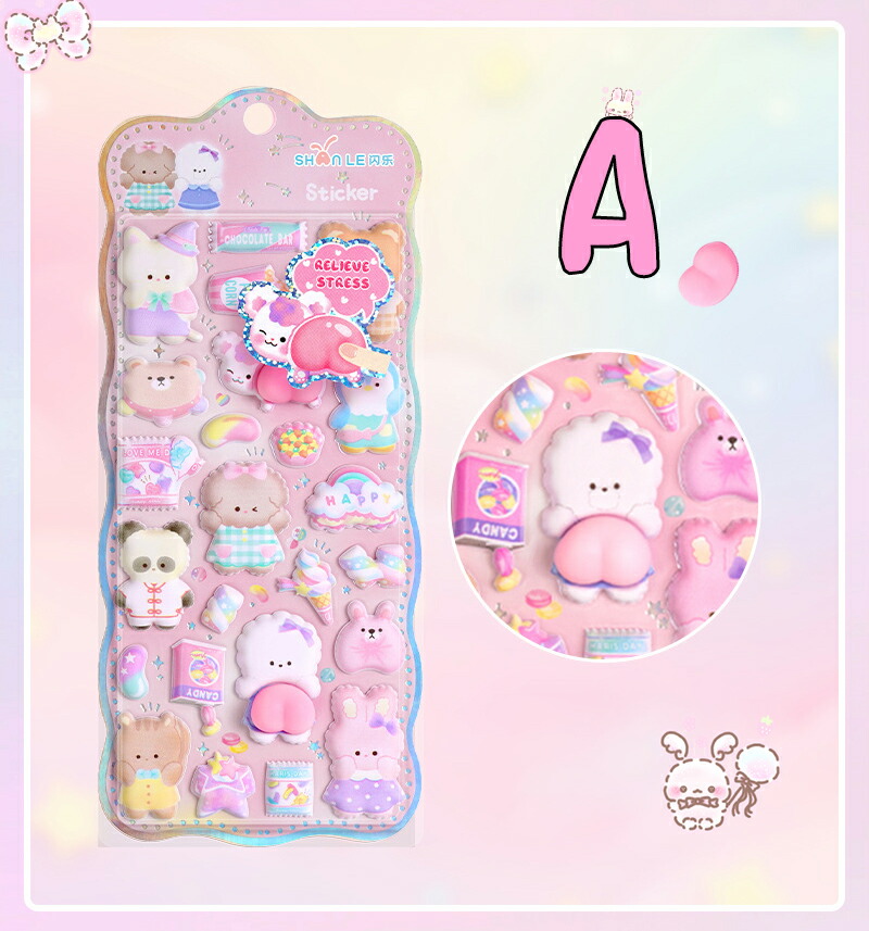 NEW柄登場 おはじきシール ぷくぷくシール 3D立体シール おしりシール もちもち シール帳 ぷっくり つやつや 刺繍ステッカー 可愛いシール ご褒美シール 日記 SNS大人気 手帳