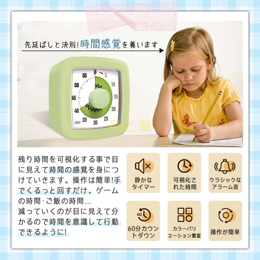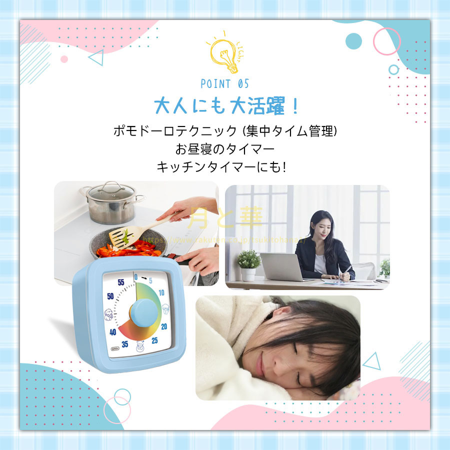 タイマー 子供 子ども 時計 知育 学 ホワイト オレンジ ピンク グリーン ブルー