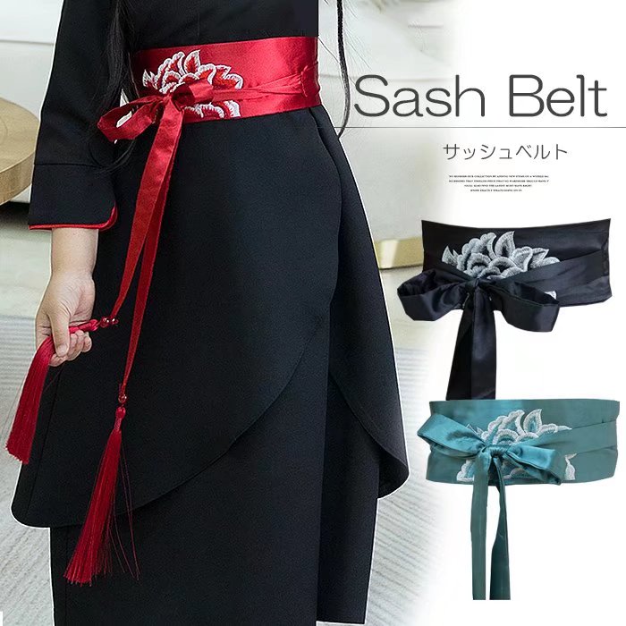 着物 和風 ドレス 飾り サッシュベルト 太め レディース ワンピース ウエストベルト 黒 ウエストマーク ベルト