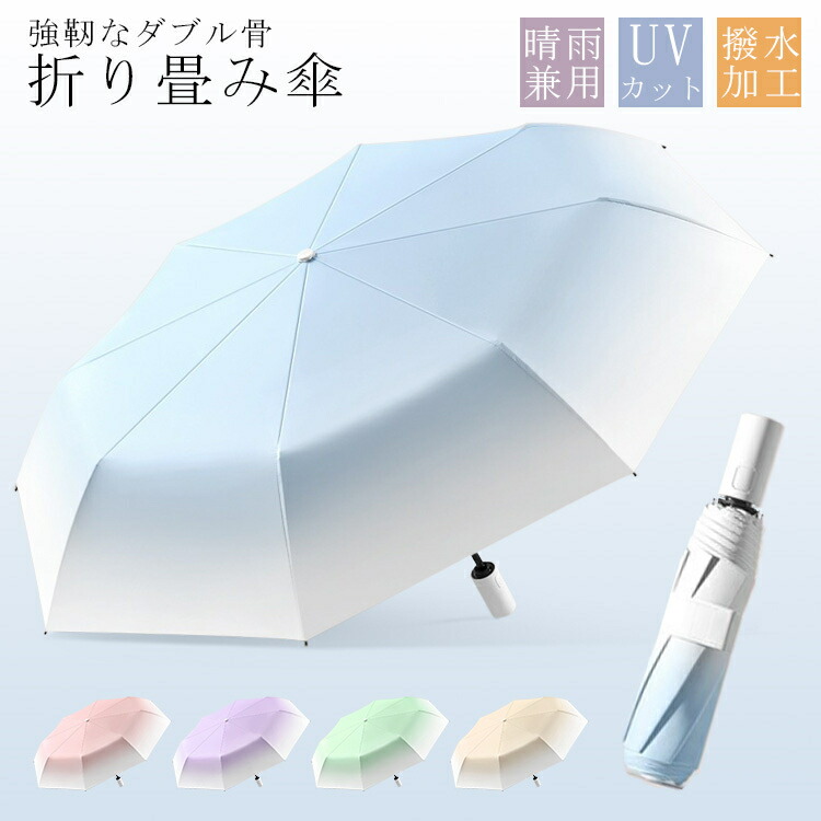 折りたたみ傘 折り畳み傘 自動開閉 晴雨兼用 8本ダブル骨 強靭なダブル骨グラデーションカラー UVカット 撥水加工 耐風 遮光 軽量 紫外線対策 遮熱層
