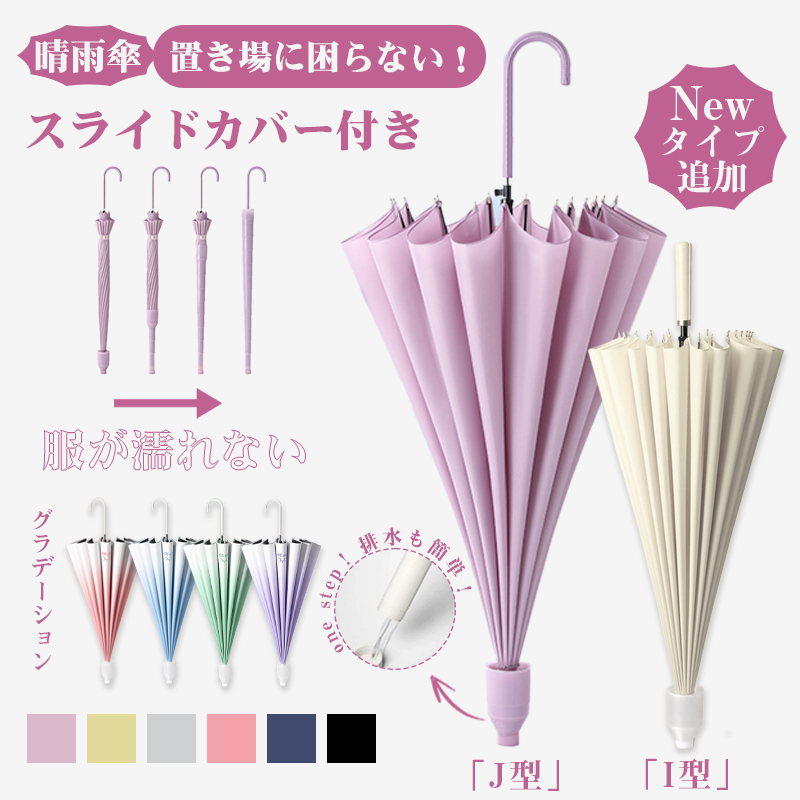 カバー付き傘|水漏れ防止に!スライドカバー付き| 防水カバー 長傘 長柄傘 雨晴兼用 メンズ レーディス 男女兼用 耐風傘 かわいい 梅雨 ワンタッチ| 8骨晴雨傘追加 送料無料
