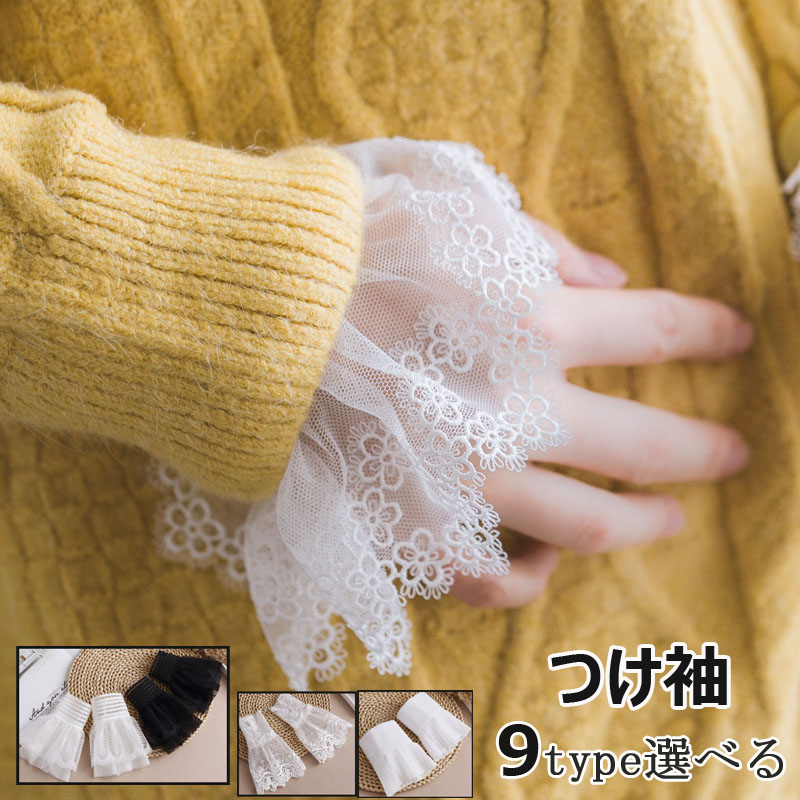 豊富な9type選べる 付け袖 つけ袖 レディース つけそで 総レース付け袖 レース付け袖 レース ホワイト ブラック ふんわり フリル 二重袖 重ね着 アクセサリー 春 20代30代40 レイヤード