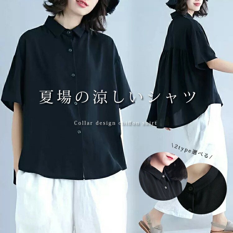1,000円OFFバンドカラーシャツ 半袖 レディース シャツ ブラウス春 夏 秋 黒 五分袖 スタンドカラーシャツ ギャザー きれいめ 夏ブラウス ゆったり 黒シャツ 半袖シャツ スタン ボリューム