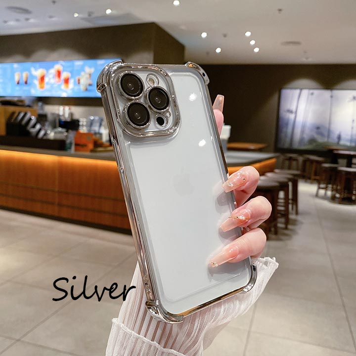 iPhone17ケース 透明 耐衝撃 落下防止 シンプル iPhoneケース iPhone16ケース スマホケース クリア アイフォン15ケース シルバー ゴールド ユ アイフォン16ケース