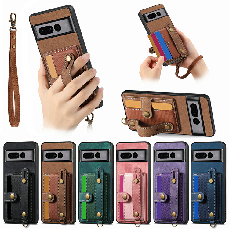 Pixel9a ケース 耐衝撃 カバー ストラップ付き PUレザー カード収納 持ち手 リング付き 片手持ちに便利なハンドストラップ付き かわいい 人気 Google グーグル ピクセル スタンド機能