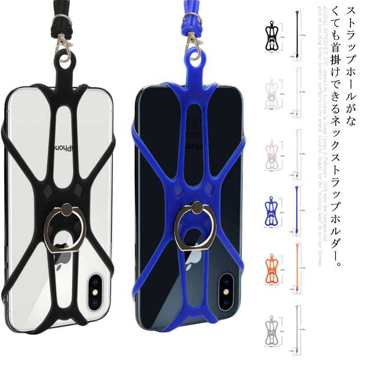 4-6.5インチスマホ適用♪ スマホホルダー スマートフォン ネックストラップ シリコン 首掛け フィンガーリング付き 落下防止 紛失防止 スタンド機能 iphone Galaxy Hu Xiaomi