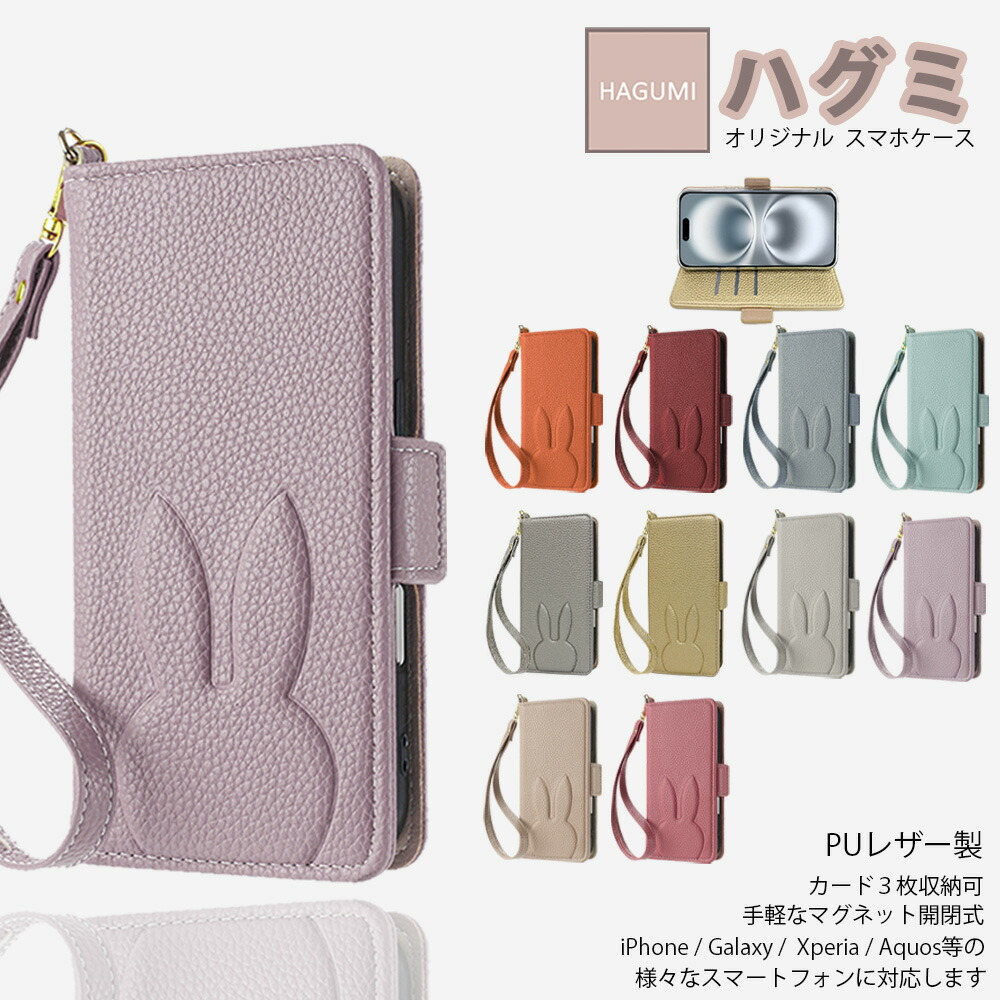 手帳型 兎 アニマルおしゃれ かわいい ストラップ付き スマホケース ウサギ どうぶつ 高級レザー