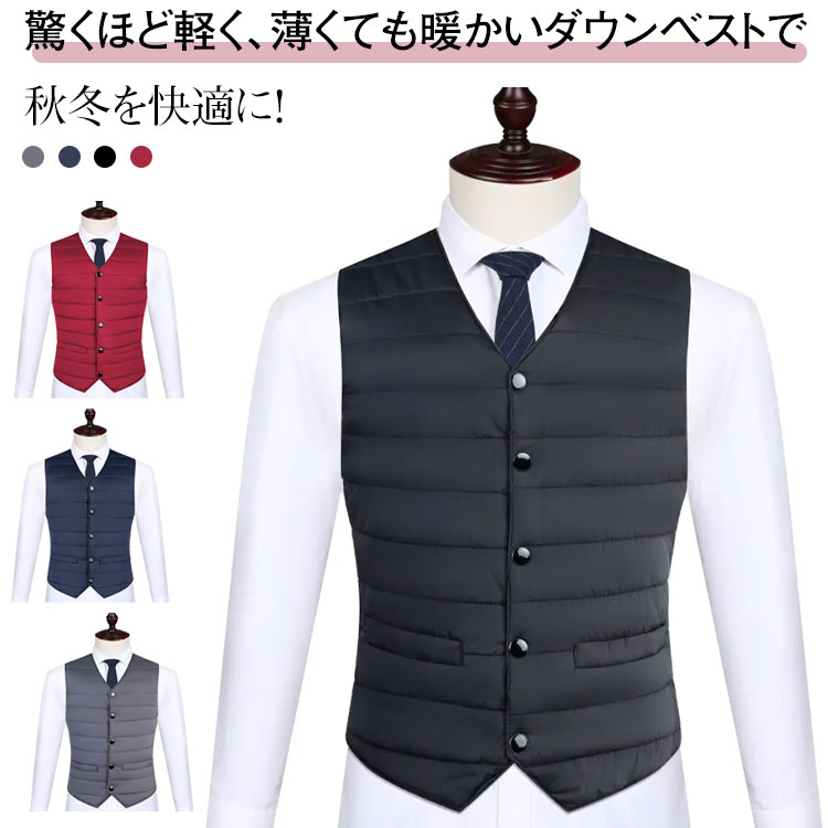ダウンベスト ビジネス インナーベスト 中綿ベスト メンズ アウター ノースリーブ 軽量 スーツベスト ライトベスト ジレ ベスト スーツ 防寒 中綿 Vネック 大きいサイ インナー