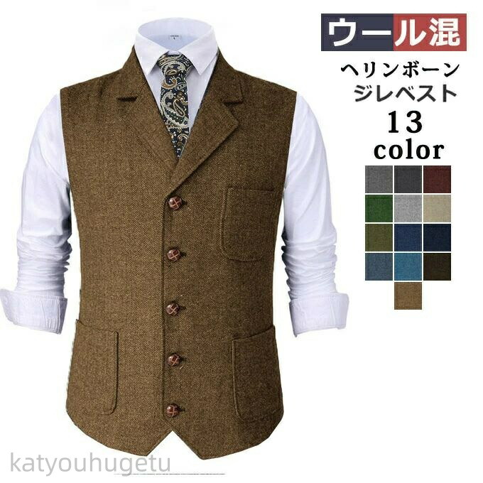前後同じ素材 全13色 冬 秋 春 男性用 卒業式 紳士服 結婚式 ビジネス ジレベスト Vネック トップス 大きいサイズ スリム ウールツィード ベスト ウール混 メンズ スーツベスト ヘリンボーン