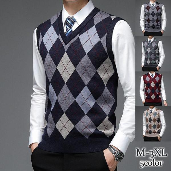 送料無料 クーポン ニットベスト メンズ ネック プルオーバー セーター チェック柄 カジュアル ビジネス アーガイル ゆったり 春 秋