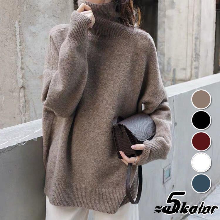 ニットセーター レディース 秋冬 40代 長袖 ニットトップス 無地 セーター ハイネック ショット丈 ゆったりプルオーバー 厚手 おしゃれ 無地セーター