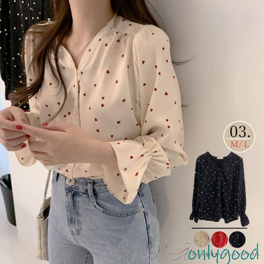 ハート柄 シャツブラウス レディース 長袖浴衣単品
