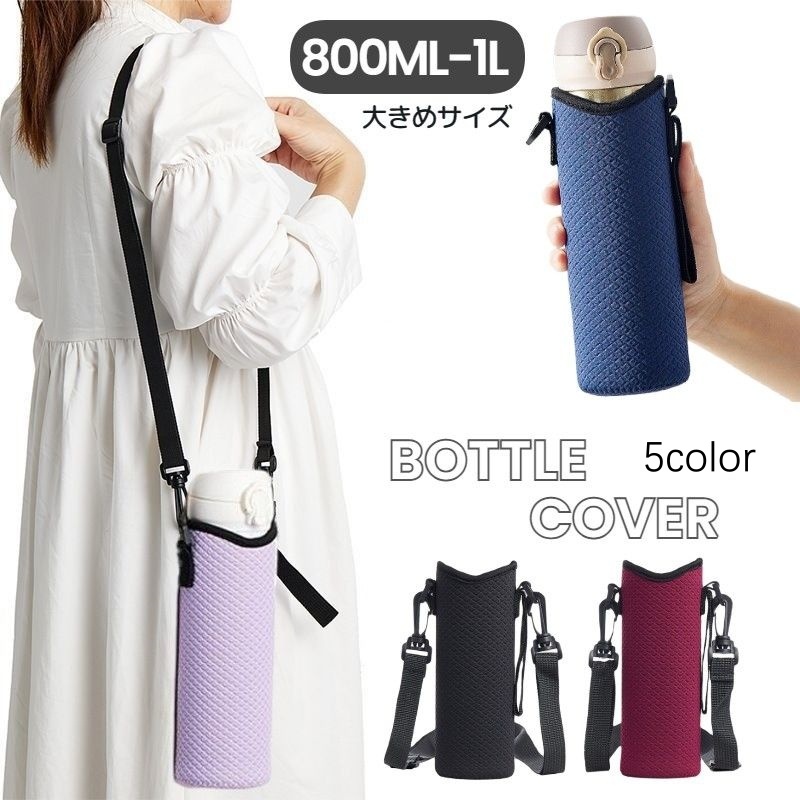 ボトルカバー 水筒カバー 肩掛け ショルダー ストラップ付き ひも 800ml 900ml 1000ml 1L 無地 通勤 通学 シンプル 女の子 男の子 水筒ポーチ お弁当グッズ 大人 水筒ホルダー