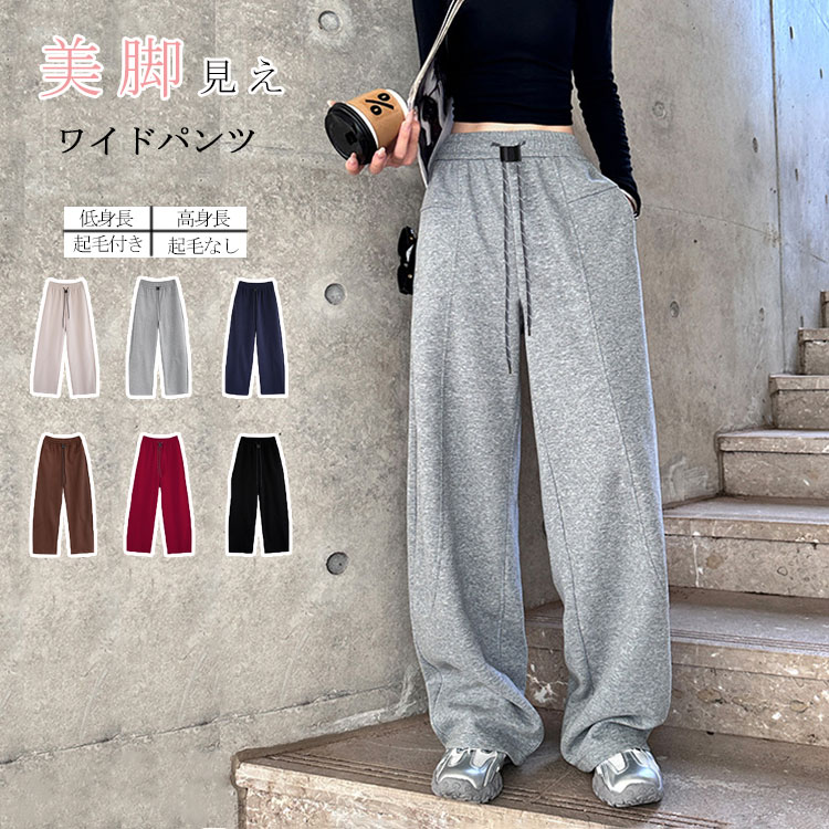 ワイドパンツ レディース カーブパンツ カーブ パンツ ロング 裏起毛 起毛なし ワイド きれいめ ボトムス ズボン ガウチョパンツ ジャージパンツ 美脚パンツ ゆったり トレンド 秋 冬 春 着痩せ