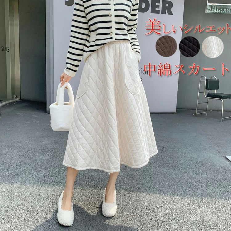 キルティングスカート キルティング スカート フレア ロングスカート Aライン 中綿 ロング 秋 冬 レディース フレアスカート 柔らかい ふんわり 着心地 ゆったり 無地 カジュアル ナチ シンプル