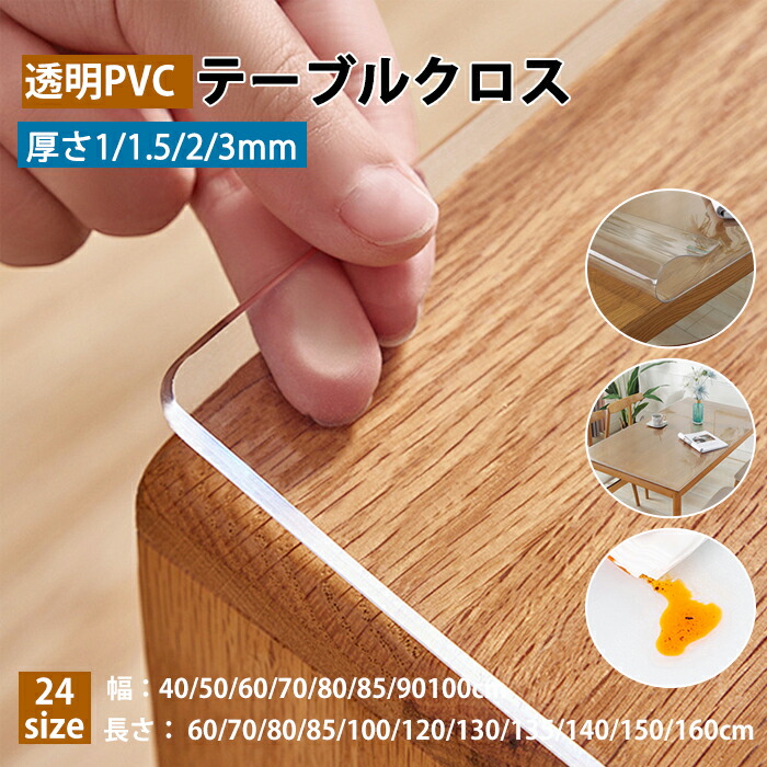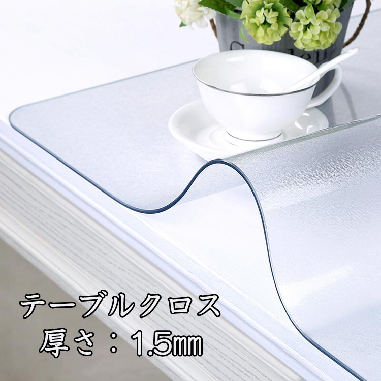 おしゃれ 食卓 クリア テーブルクロス 選べる14サイズ 透明 テーブルマット 撥水 PVC デスクシート 厚さ1.5mm 撥油 ダイニングテーブルマット 滑り止め ビニール 耐 防水