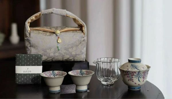 中国伝統茶器 「藤の花」おしゃれ6点セット 収納バッグ付き コン