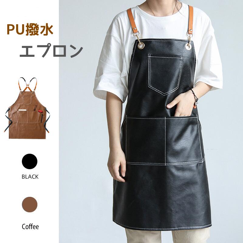 防水防油 フェイクレザー 肩紐調節 シンプルで使いやすいエプロン 合皮 メンズ レディース H型 DIY チュニックエプロン 北欧風デザイン かぶる ワークエプロン 北欧風 保育士 美 カフェエプロン
