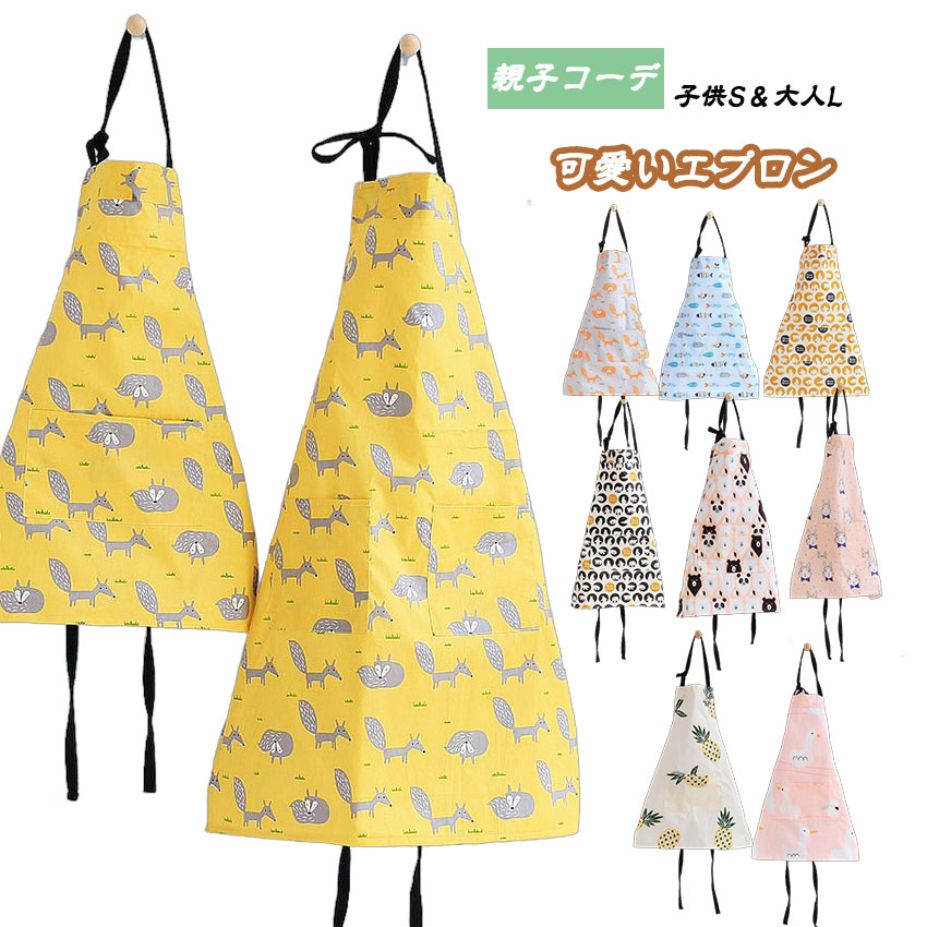 エプロン キッズ 親子お揃い 親子ペア 子供用 ペア 女の子 男の子 大人 子供 キッチン かわいい ペアルック 首掛け ママ 料理教室 誕生 前掛け