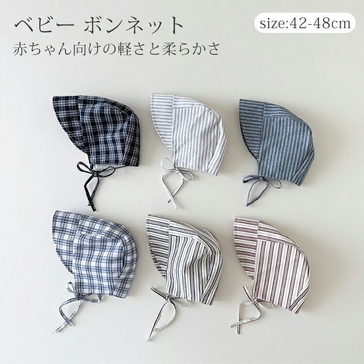 ベビー 帽子 ボンネット 赤ちゃん ナチュラル 北欧 チェック柄 ストライプ 女の子 男の子 かわいい お洒落 春 夏 秋 シンプル おしゃれ 韓国 新生児 出産祝い 柔らかい 出産 幼児