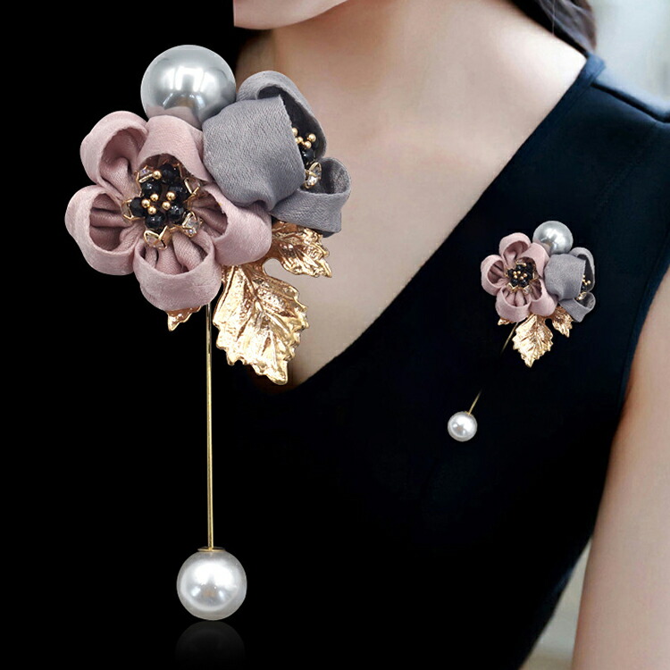 フラワーコサージュ ラペルピン ブローチ 花 結婚式 葉っぱ リーフ ビジュー パール パーティー 冠婚葬祭 フォーマル アクセサリー レディース シンプル キラキラ 卒業式 七五三 発表会 入学式